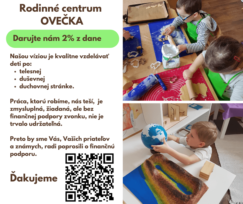 Rodinné centrum Ovečka sa venuje podpore rodín a detí v oblasti montessori vzdelávania, výchovy a trávenia voľného času.
