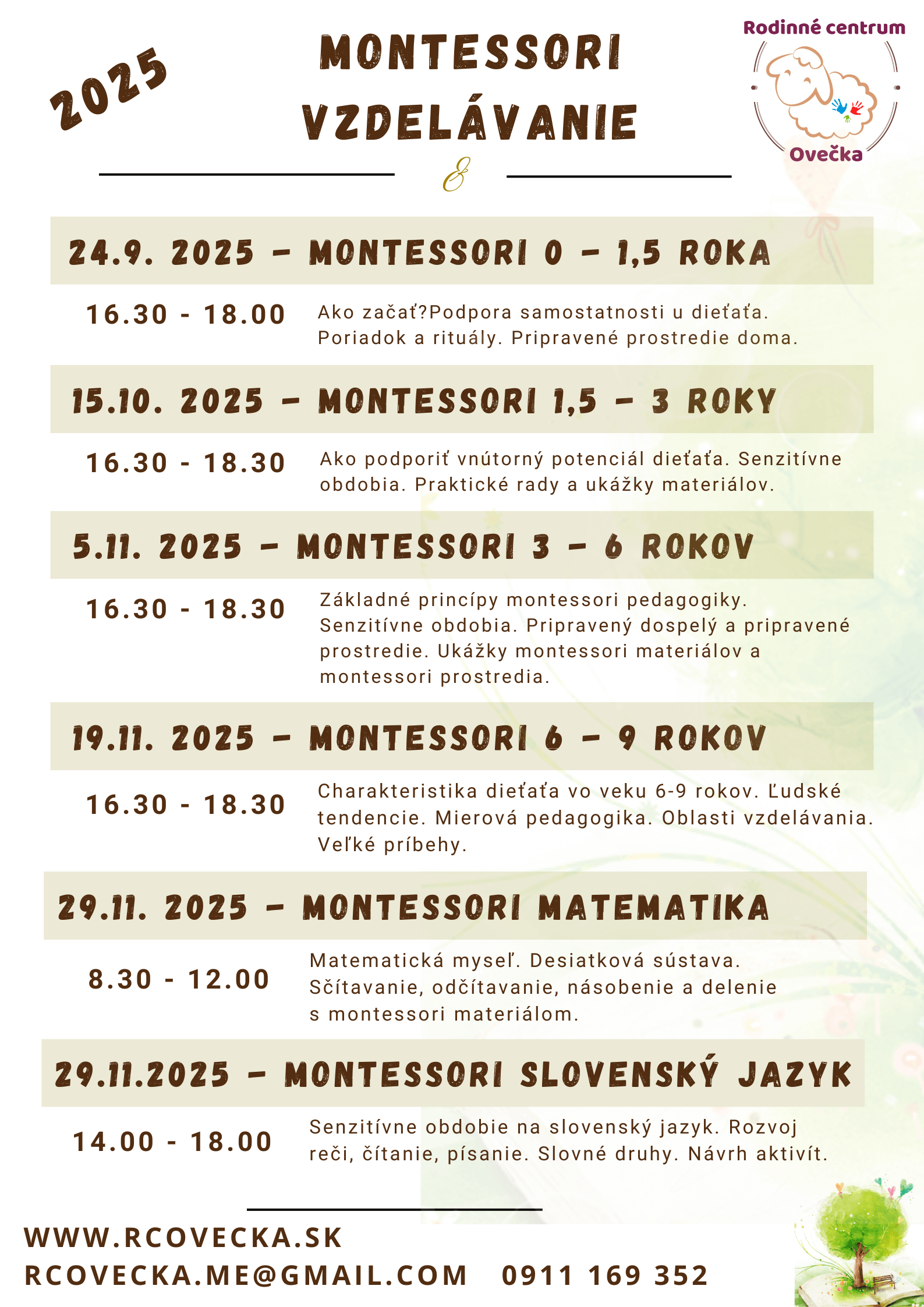 • Montessori seminar pre rodičov, učiteľov detí vo veku 3 – 6 rokov