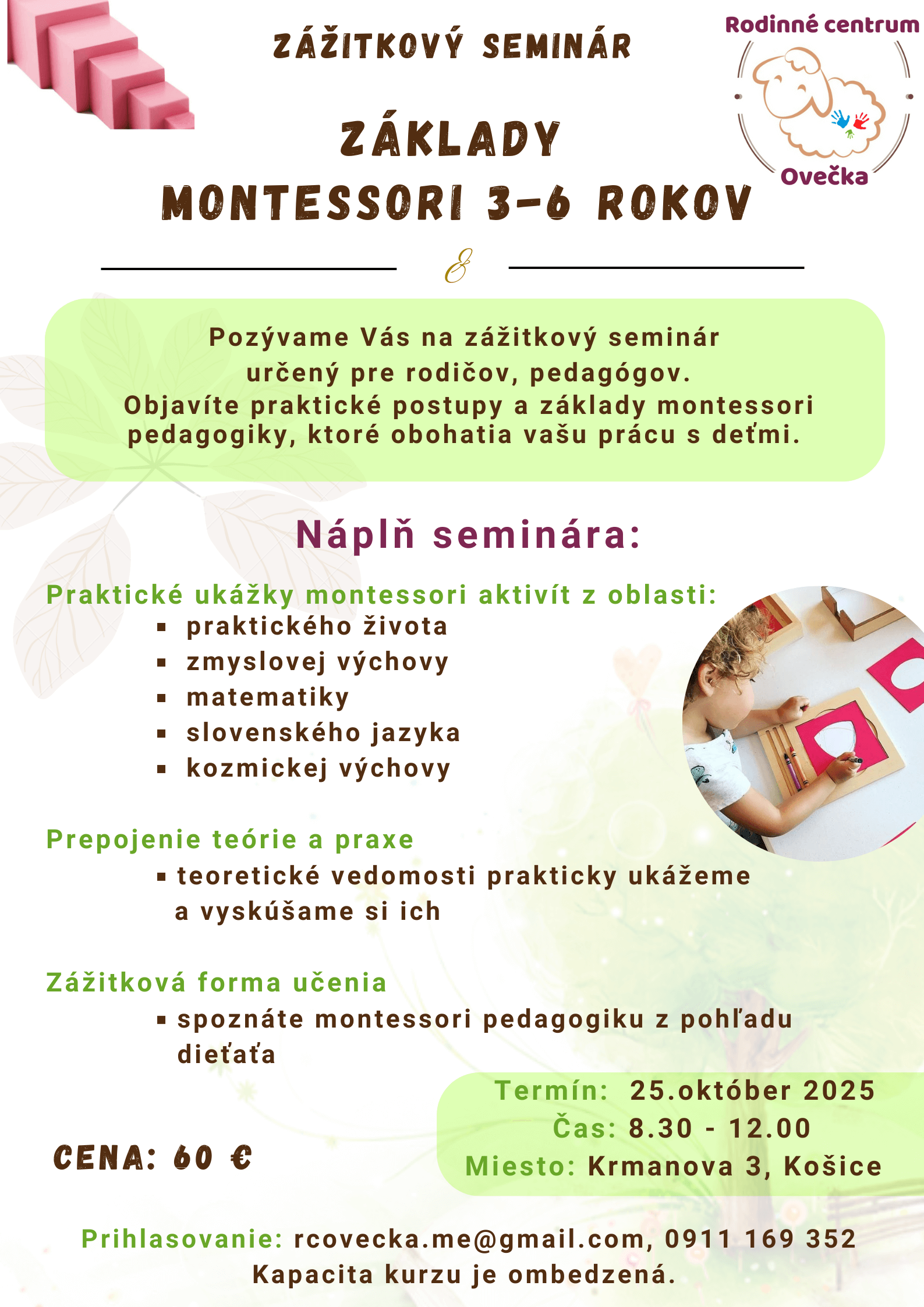 • Základy montessori 3 – 6 rokov (zážitkový seminár)