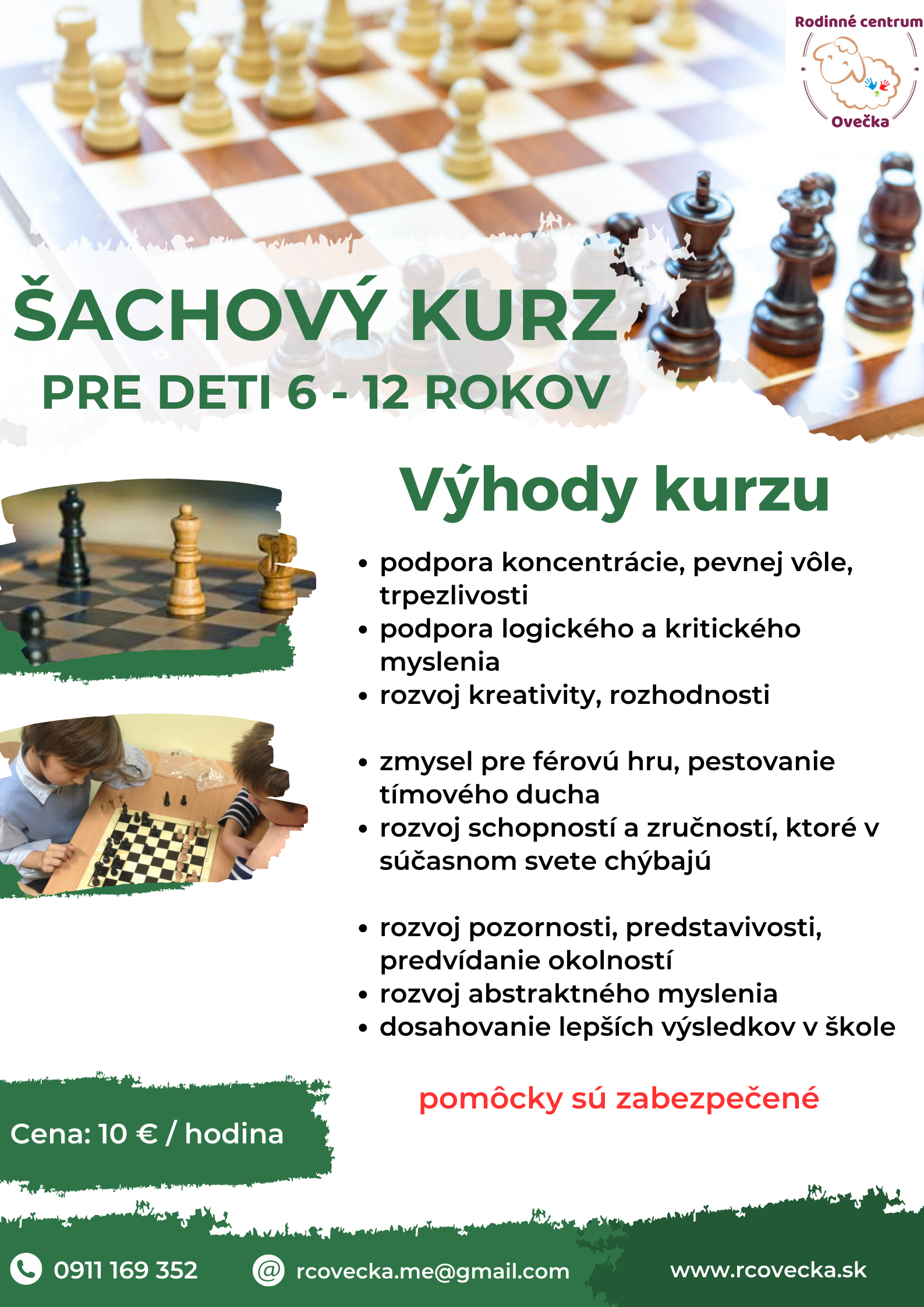 Predvídanie – deti sa učia najprv myslieť, potom konať. Po čase šach pomôže rozvinúť trpezlivosť a samostatné myslenie.